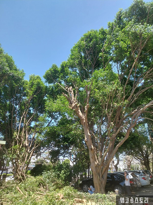 그리고 대만은 태풍이 자주 발생하는 지역이므로, 이 가지치기를 통해 나무의 무게 균형을 조절하고 가지가 떨어지는 현상으로 인한 사고를 예방합니다. 또한, 가지치기는 나무 내부까지 햇빛이 잘 들고 공기가 순환되도록 하므로 나무의 건강한 성장을 돕는다고 합니다. 그래서인지 나무의 가지치기 전과 후를 비교해 볼 때마다 꼭 필자가 이발한 것처럼 아주 시원합니다.