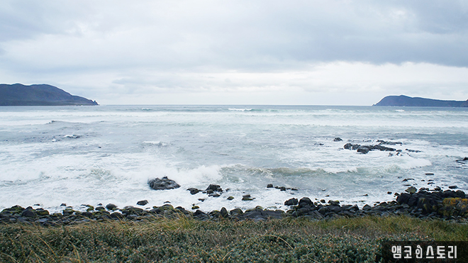 저녁 식사를 마치고 다시 들른 The Neck Outlook 펭귄 출몰 지역. 귀여운 펭귄들을 볼까 기대를 했는데, 아무리 기다려도 해변에 움직이는 생명체가 하나도 없다. 여기까지 와서 펭귄을 보고 가면 좋겠지만 마지막 배 시간이 다가와 아쉽지만 여기서 돌아가야 한다.