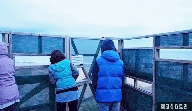 아직 완전히 해가 지지 않아 펭귄이 돌아오지 않고 있나 보다.