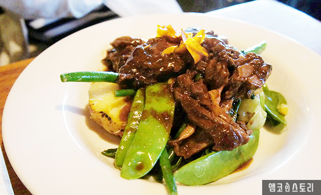차를 몰아 The Neck Lookout 쪽으로 가는 도중, 저녁식사 시간이 되어 길가의 레스토랑으로 들어간다. 주차장에 주차를 하는데 하늘이 잔뜩 흐리다.