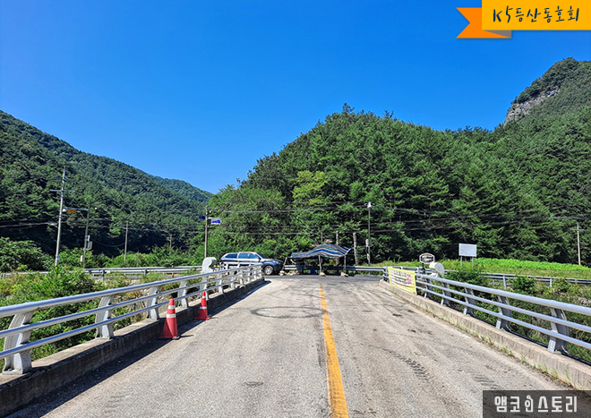덕산기 계곡은 널리 알려진 유명한 관광지가 아니다 보니 출발 지점에는 화장실을 비롯한 편의 시설이 전무합니다. 그래서 북동교에 도착하기 전에 가장 가까운 휴게소에 들러 볼 일을 봐야 낭패를 보지 않습니다. 최근 몇 년 사이 계곡 트레킹의 성지로 알려지면서 찾는 이들이 많아졌는데요, 그래서 마을 주민들에게 여러 가지 피해가 발생하는 상황이고 자연 훼손도 우려되어 여름 휴가철인 7월과 8월, 딱 두 달 동안은 자연 휴식년제를 실시하고 있습니다.