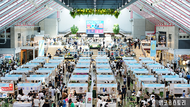 지하철 1호선 인천역 1번 출구에서 5분 정도 걸어가자, 인천 바다를 뒤로 하고 거대한 위용을 자랑하는 상상플랫폼을 만납니다. 이곳의 ‘게이트 7번'에 서니 입구부터 경쾌한 음악 소리와 함께 사람들의 즐거운 웃음소리가 들려옵니다. 마켓의 활기찬 분위기를 짐작케 하는데요, 안으로 들어서자 후끈한 열기와 북적이는 인파가 주말 축제의 진면목을 제대로 찾아왔음을 알립니다.