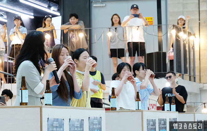 마켓의 열기를 더욱 고조시킨 것은 바로 인천의 다채로운 수제 맥주였습니다. 마침 ‘로컬 맥주 빨리 마시기 대회’가 열리고 있었는데요, 사회자의 재치 있는 입담과 참가자들의 열띤 경쟁은 구경하는 이들의 손에 땀을 쥐게 합니다. 맥주 빨리 마시기 대회에는 인천 강화의 ‘초록곰 맥주’와 연수구의 ‘엑스트라몰 브루잉룸 맥주’가 아낌없는 협찬을 해주었어요. 치열한 접전 끝에 탄생한 우승자에게는 로컬 맥주 세트와 마켓 쿠폰이 수여되었습니다. 이외에도 DJ의 신나는 공연, 빈티지 및 로컬 브랜드 경매, 상시 체험 프로그램 등이 마켓을 더욱 풍성하게 채웁니다.