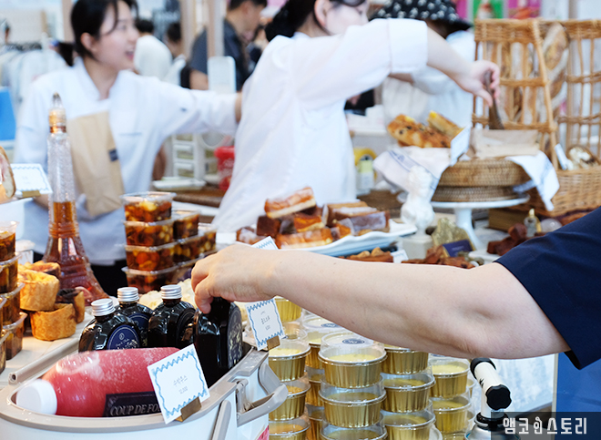 커피와 디저트 부스 역시 그냥 지나칠 수 없지요. 직접 로스팅한 원두로 내린 스페셜티 커피부터 달콤한 디저트까지, 눈과 입을 즐겁게 하는 것들로 가득한 공간에서 선택 장애는 어쩔 수 없는 옵션입니다. 휘낭시에와 에그 타르트는 달콤하고 부드러운 맛이 일품이었고, 스콘, 베이글, 수제 요거트 등 취향 따라 즐기는 다양한 디저트 행렬에 쉬이 발걸음을 뗄 수가 없었습니다.