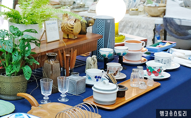 흥겨운 분위기를 뒤로하고 2층으로 올라가니 또 다른 세상이 펼쳐집니다. 비로 ‘제물포 웨이브 빈티지 마켓’인데요, 20여 팀의 국내 대표 빈티지 셀러들이 참여해 그릇, 의류, 소품 등 자신만의 기준으로 선별한 세월의 멋을 선보이는 자리입니다. 희귀한 디자인의 찻잔부터 독특한 패턴의 원피스까지, 세상에 단 하나뿐인 보물을 찾는 재미가 쏠쏠한 현장이에요.