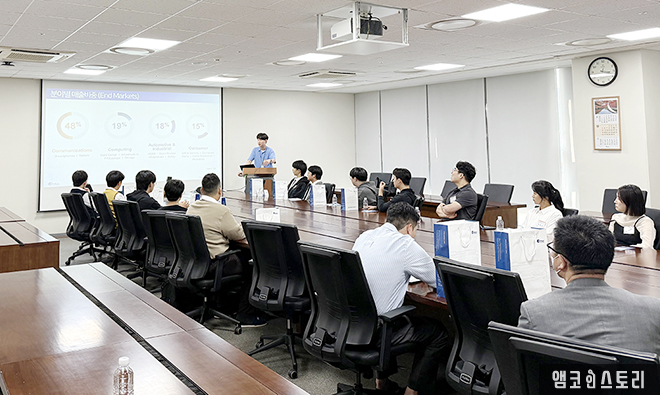 9월 29일, 재능대학교 학생들과 교직원들 20여 명이 송도사업장을 방문했습니다. 이날 각 부서의 안내로 회사 소개에 이어 회사를 둘러보고 앰코의 57년 역사와 반도체에 관한 이해의 시간을 가졌습니다. 이번 기업 현장견학 프로그램은 회사 소개 및 멘토링 시간, 중식 식사, 장비기술팀과 물류팀 견학, 앰코코리아 역사관인 앰코센테니얼홀 소개 등으로 진행되었습니다.