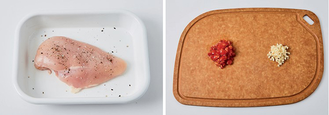 ① 닭가슴살은 밑간한다.