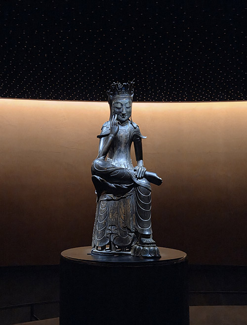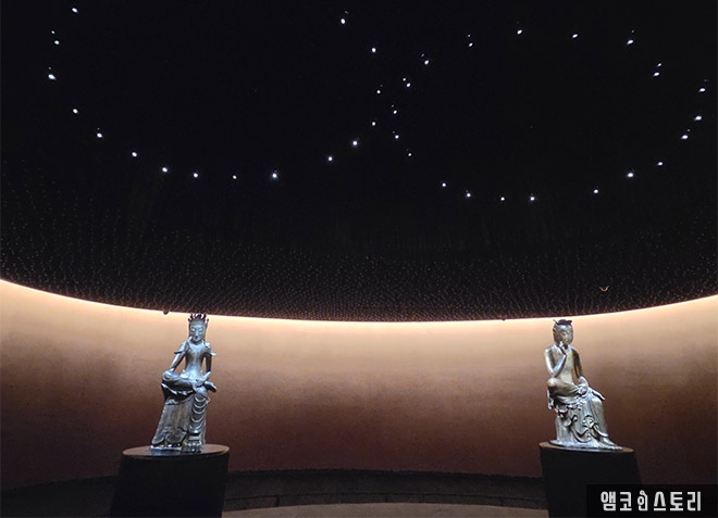 요즘 가장 핫하다는 국립중앙박물관의 ‘사유의 방’에 다녀왔습니다. ‘사유의 방, 두루 헤아리며, 깊은 생각에 잠기는 시간’이라는 안내 문구를 지나, 고요한 어둠 속을 걸으면 은은한 빛을 머금고 1500년의 시간을 지켜온 금동반가사유상이 앉아있습니다. ‘반가’는 의자에 앉아서 한쪽 다리를 다른 무릎 위에 얹어 놓은 자세이고, ‘사유’는 생각에 깊이 잠겨 있다는 뜻으로, 생로병사에 대한 고뇌와 깨달음을 상징한다고 합니다. 해탈의 미소로 사유하는 모습을 바라보면서 마음의 평안을 얻고 돌아왔습니다.