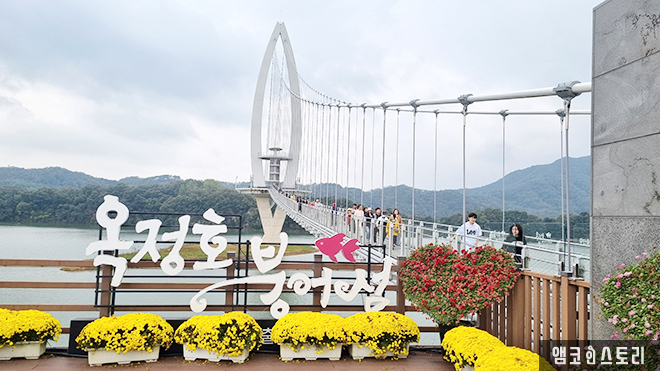 임실 붕어섬 생태공원은 섬진강댐 건설로 조성된 인공 섬으로, 국사봉 전망대에서 보면 붕어를 닮은 모양 때문에 붙여진 이름이다. 이곳은 전북 임실군이 매입해 사계절 꽃으로 꾸며진 경관조성을 통해 생태공원으로 재탄생했다. 옥정호 출렁다리는 요산공원과 붕어섬을 연결하며 길이 420m, 폭 1.5m로, 붕어 형상의 주탑과 바람을 느낄 수 있는 구조가 특징이다. 생태공원 조성사업의 일환으로 만들어졌으며, 문화재인 양요정과 망향탑이 함께 위치해 역사와 자연이 공존하는 공간으로, 주변에 데크길로 산책할 수 있게 만들어, 전국에서 많이 찾아오는 관광지 중 하나다.