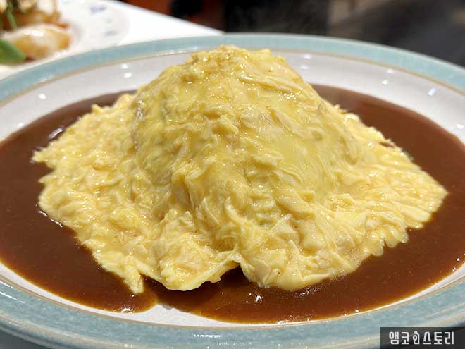 먼저, 오믈렛은 부드러운 계란의 식감에 특제 데미그라스소스가 진하게 어우러져 입안 가득 풍미가 퍼지는 맛이었어요. 처음 나오는 퐁신한 계란 모양은 직원이 커팅해준답니다. 안에 들어간 볶음밥도 간이 딱 알맞고 닭고기가 들어가 있어서 맛도 최고였습니다. 워낙 필자가 오므라이스를 좋아하는 편이 아님에도 정말 맛있게 먹었답니다.