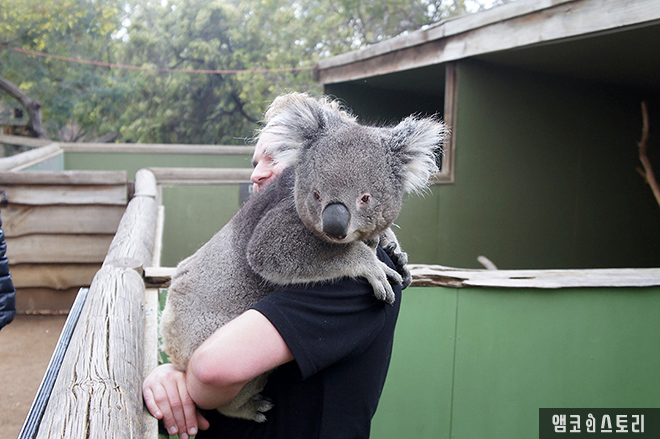 나무늘보처럼 느리디 느린 코알라, 이렇게 가까이서 코알라를 보다니. 가이드의 설명에 따르면, 코알라의 주식은 유칼립투스 나뭇잎인데, 잎 속에 신경안정 작용을 일으키는 성분이 있다고 한다. 그래서인지 먹으면 먹을수록 항상 졸린 듯 몽롱하게 있다는 코알라다.