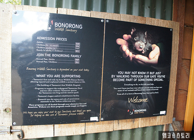 동물원 입구 주차장에 차를 주차하고 입구로 다가가니 귀엽게 생긴 동물 간판이 보인다. 이 동물은 바로 태즈메이니아에만 서식하는 태즈메이니아 데블이다.