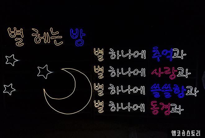 11월 늦은 가을, 별이 가득 쏟아지듯이 LED 터널, 별빛 산책길, 달, 나비, 사슴, 황금마차 등 50여 종의 조형물이 나주 빛가람호수공원을 환하게 빛내고 있다. 호수 주변을 따라 이어진 빛의 터널을 산책하는 시간은 마치 동화의 나라를 걷는 기분으로 소소하지만 따뜻한 추억을 남겼습니다.