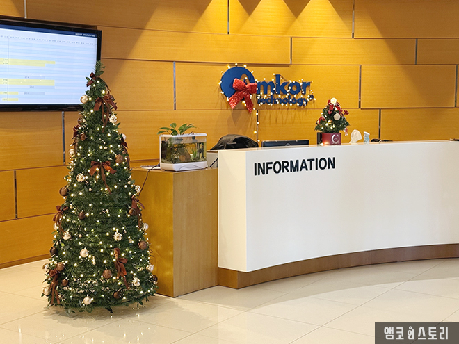 앰코코리아 전 사업장(인천 부평, 인천 송도, 광주)에서는 2025년을 마무리하는 크리스마스트리를 출입구 로비마다 설치하여 따뜻한 연말 분위기를 조성하였습니다. 새해 덕담을 비롯한 따스한 마음을 전하시길 바라며, 가족 및 동료와 함께 위로와 격려의 메시지를 주고받으며 새해 소원을 나누어 보시기 바랍니다.