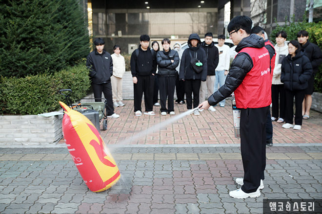 앰코코리아는 기숙사 내 모든 입주 사원들을 대상으로 2025년 하반기 비상대피 소방훈련을 실시했습니다. 이번 훈련은 화재 발생 상황을 가정하여 안전하게 대피하는 과정과 초기 진화 대응 능력 강화를 목표로 진행되었습니다. 특히, 대피 집결지 확인, 초기 화재 진압을 위한 소화기 사용법 교육 및 직접 시연, 대피 유도 절차 등 실제 상황에서 필요한 대응 능력을 강화하는 데 중점을 두었습니다. 이를 통해 사원들은 골든타임 확보를 위한 신속한 대피와 대응 체계의 중요성을 학습하고, 안전한 기숙사 환경을 함께 조성하는 의미 있는 시간을 가졌습니다.