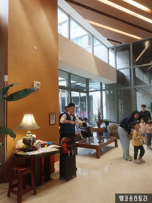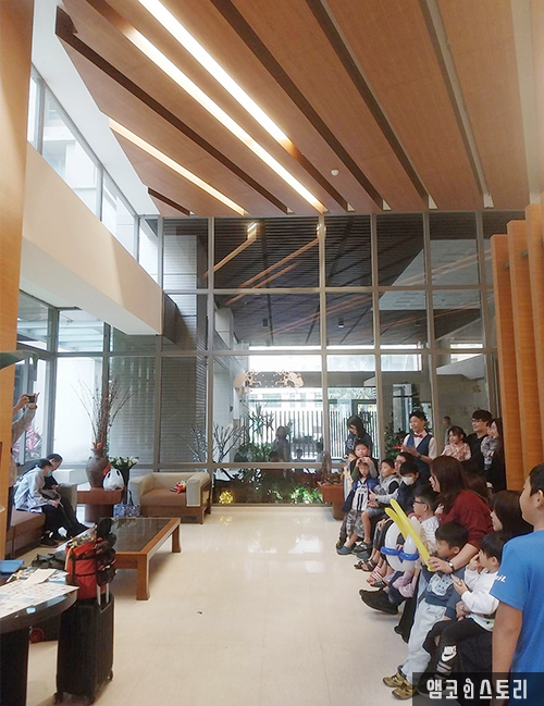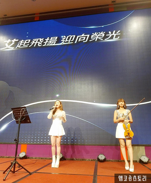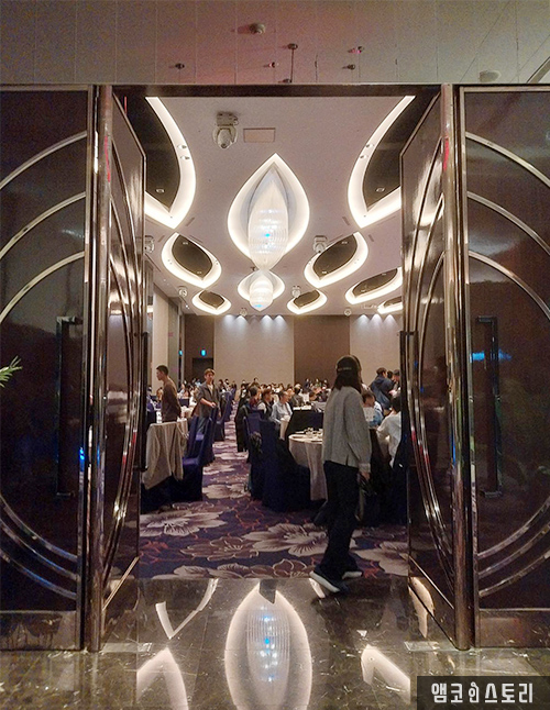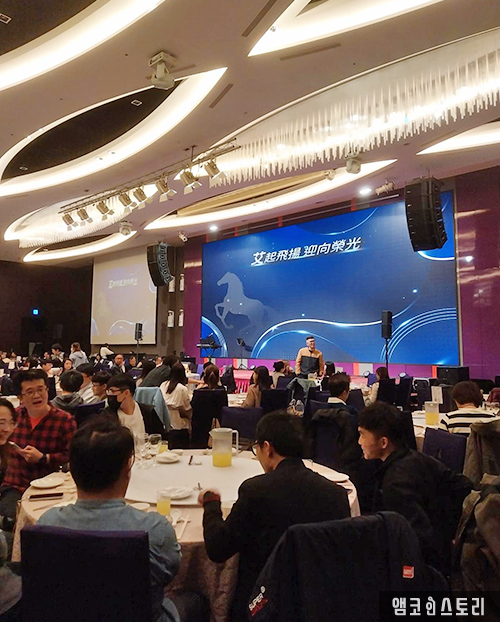도착해보니, 장소는 평소에는 결혼식 연회장으로 사용되는 곳 같았습니다. 이미 동료들이 레크레이션과 행사안내 등을 진행하고 있네요. 보통은 외부업체를 섭외해 레크레이션이나 댄스, 여러 퍼포먼스를 보여주기도 합니다.