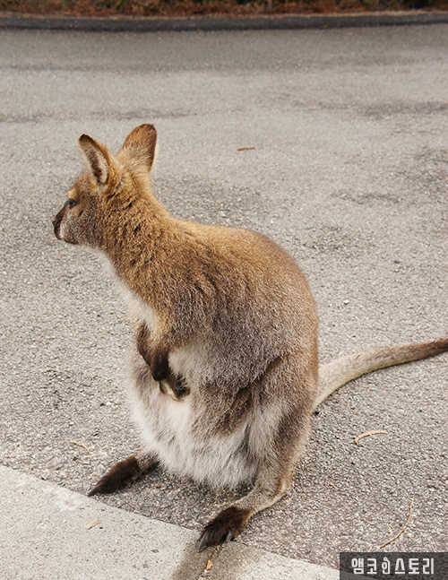 헉! 자세히 보니 아기 왈라비가 숨어있었다.