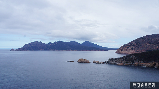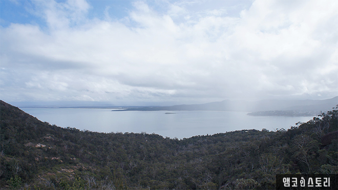 급하지 않은 경사로로 가볍게 산책하듯 오르는 와인글라스 베이 전망대 트래킹. 왕복 한 시간 반 정도의 거리인데, 아이들과 산책하기 좋다. 산과 바다를 보면서 걷는 길. 그 신선한 숲과 바다의 향기를 담을 수 있으면 좋으련만, 풍경만 담아 참 아쉽다.