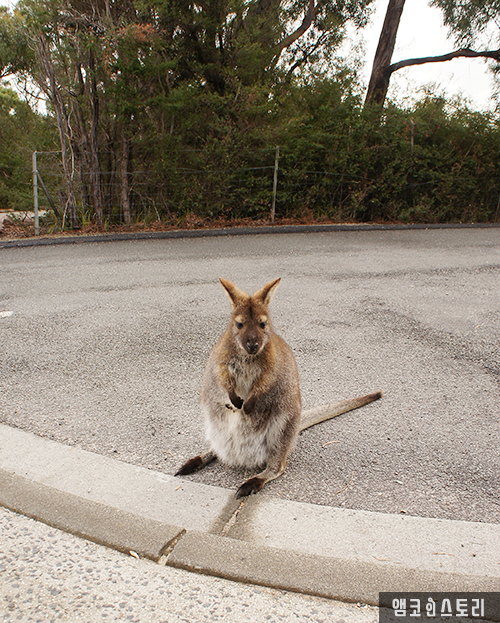 짐 정리를 마치고, 간단한 아침식사 후 프레이시넷 국립공원로 향한다. 주차장에 차를 주차하고 나오는데, 어라? 요 녀석이 우리 가족 앞으로 다가온다. 너무 귀여운 왈라비다. 아기 주머니에 아기가 있는지 궁금하다.