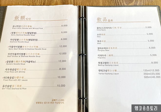 ✔️ 메뉴 : 크림새우 28,000원, 유니짜장 6,000원, 차돌박이짬뽕 12,000원