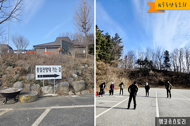 세 시간을 달려 오늘의 출발지인 강원도 고성 통일 안보 공원에 도착했어요. 추운 날씨 덕분에 고속도로엔 차가 없어 전혀 밀리지 않네요. 휴전선 앞 통일전망대에 가려면 여기 통일안보공원에서 출입 신고를 해야 합니다. 역시 이곳이 최북단임을 체감할 수 있습니다. 그러나 우리는 북쪽이 아닌 남쪽으로 트레킹을 할 겁니다.