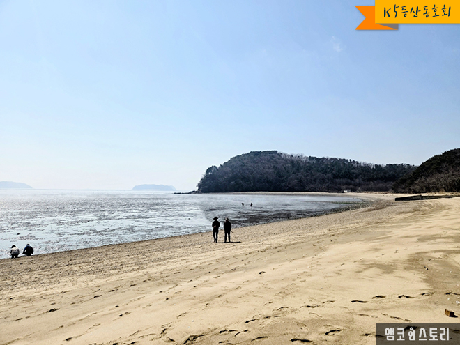오늘 우리는 섬을 전부 종주하는 것이 아니라 해변과 갯벌, 산을 골고루 즐길 수 있는 아기자기한 산책 코스로 트레킹을 할 것입니다. 오늘 아침은 다행히도 미세먼지가 적어 푸른 하늘을 보여줍니다. 섬이라 육지보다 바닷바람이 많이 불 거라 예상했는데, 바람도 잔잔하고 아주 따뜻한 날씨에 봄 기운이 느껴지는 최고의 날씨입니다.