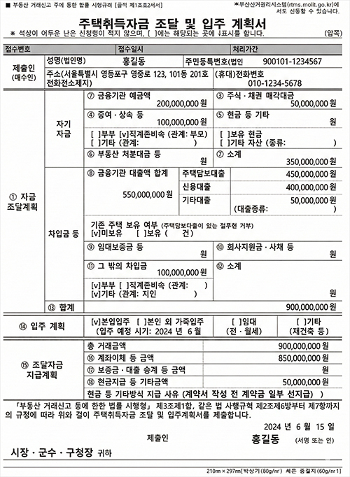 관할 구청에 서류를 넣습니다. 이때 자금조달계획서는 현미경 검증을 받습니다. 통장에 있는 1원 단위까지 증빙서류와 맞아야 합니다. 특히, 부모님 등 가족에게 자금을 빌린다면 단순 차입이 아닌 법정 이자율(연 4.6%)을 적용한 정식 차용증과 이자 이체 내역이 필수입니다.