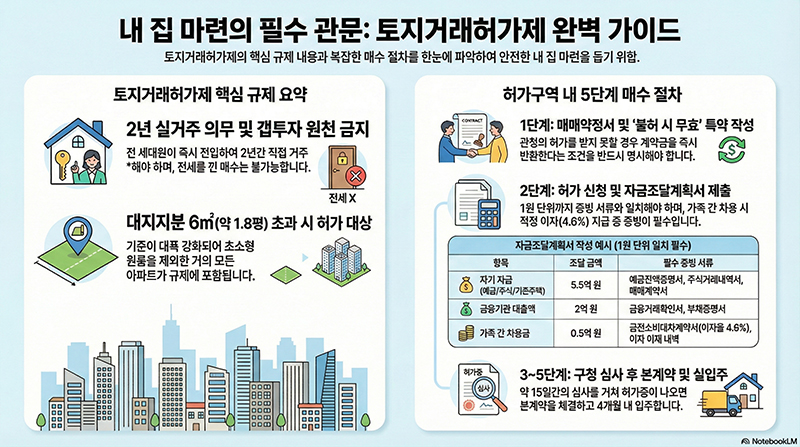 허가를 받기 위한 절대 조건은 ‘본인 직접 거주’입니다. 잔금을 치르고 즉시 전 세대원이 전입신고를 한 뒤 2년간 살아야 합니다. 전세를 끼고 미리 사두는 투자는 불가능합니다.