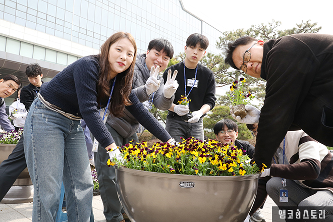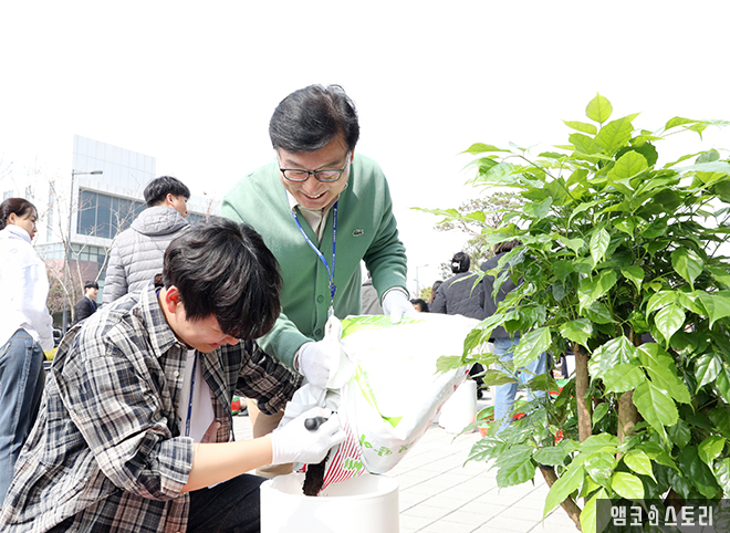 식목일을 맞아 앰코코리아 전 사업장에서 식목행사가 진행됐습니다. 이진안 사장은 “나무를 심고 가꾸듯, 소중한 인재를 채용하고 양성하여 미래의 리더로 성장시키도록 관심과 노력을 기울이겠다.”고 말했으며, 사원들은 화분 분갈이 작업과 출근로 초화를 식재하며 회사의 환경미화에 기여했습니다. 이처럼 서로 협력하며 나무와 꽃을 심는 과정을 통해 사원들은 더욱 긍정적인 에너지를 충전하는 뜻깊은 시간을 보냈습니다.
