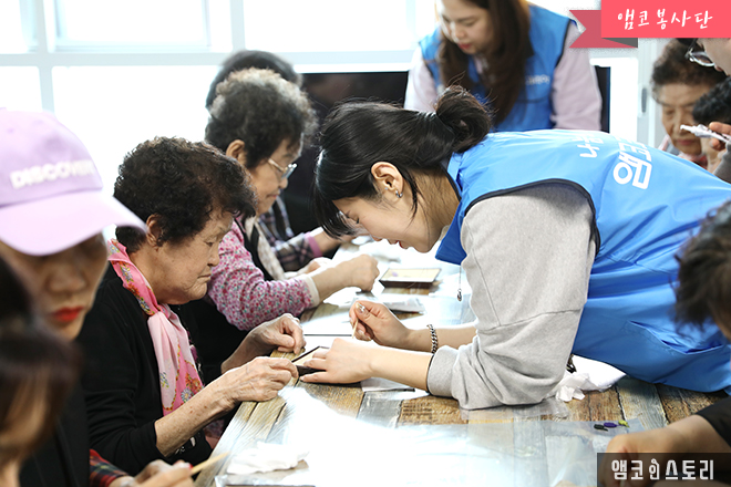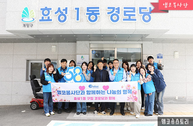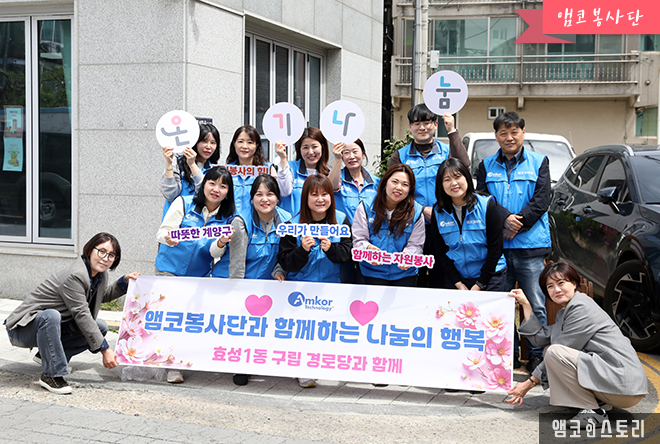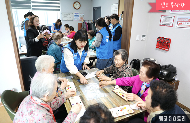 4월 22일, 앰코테크놀로지코리아 부평사업장의 앰코봉사단이 효성1동 구립 경로당에서 어르신들을 대상으로 진행되는 ‘효 드림 특공대’에 참여했습니다.