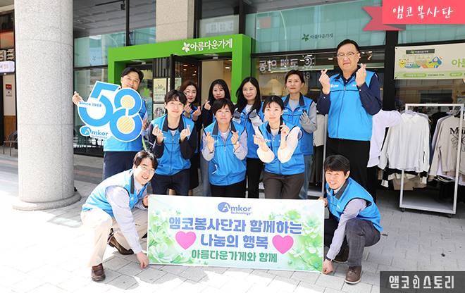 앰코테크놀로지코리아는 4월 20일부터 4월 24일까지 사회적기업 아름다운가게 인천 송도점에서 사회봉사활동을 펼쳤습니다.