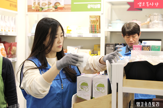 앰코봉사단 30여 명은 5일간 아름다운가게의 활동천사로 적극 활동하며, 매장 환경개선을 위한 청소와 정리정돈을 시작으로 기부물품 수거, 분류와 진열, 방문 고객 응대 등 매장의 전반적인 운영을 도왔습니다. 함께 참여한 앰코코리아 리더봉사회는 “이번 활동을 통해 사용하지 않는 물품이 새로운 가치를 얻고, 필요한 이웃에게 전달되는 과정을 직접 경험할 수 있었다.”며 “앞으로도 생활 속에서 자원 재활용과 나눔 문화 확산에 적극 동참하겠다.”고 소감을 전했습니다.