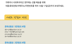 Community2221 [행복한 꽃배달] 언제나 나의 큰 산! 아버지께 드리는 편지 우리 집 기둥이신 아버지의 57번째 생신을 축하드립니다! 아버지, 아버지! 나의 아버지! 항상 우리 삼형제를 키워주시느라 고생 많으신 아버지! 어느덧 57번째 생신을 맞이하셨네요. 시간이 참 빠릅니다. 내려가서 온 식구가 모여 생일 케이크도 먹고 생일 축하 노래도 불러야 하는데, 아들이 내려가지 못해 이번 생신은 멀리서나마 축하해드리게 되었습니다. 마침 기회가 생겨서 꽃배달 이벤트를 신청해봤는데 이렇게 당첨이 되어 멋진 꽃을 보내드리게 되었으니 마음이 한결 편합니다. 직장 생활을 위해 타지 생활을 하겠다고 아버지께 말씀드렸던 때가 얼마 전인 것 같은데, 제가 인천에 올라온 지도 어느덧 1년이 훌쩍 넘어가고 있네요. 항상 당신보다 아들 걱정이 먼저셨던 아버지! 저는 열심히 잘 생활하고 있으니 걱정하지 마세.. 2014. 10. 13. 앰코인스토리와 함께하는 ‘책 추천’ 이벤트! 2014. 10. 10. [포토에세이] 토실한 알밤 보셨어요? 가을을 맞아 알밤이 아주 통통하게 익었네요!※ 사진 제공 / 미스터 반 2014. 10. 10. 웹진 [앰코인스토리] 이메일 구독 이벤트 결과 발표! 2014. 10. 8. [필리핀 특파원] 필리핀 바타드 여행기 2편 - 계단식 논 풍경의 진수, 바타드 꾸불꾸불 산길을 내려가면서 곳곳에 퍼진 계단식 논의 풍경에 시선을 빼앗겼다. 어떻게 저런 형태로 돌을 쌓아서 논을 만들어 놓았는지, 그저 신기하기만 했다. 도대체 얼마나 많은 시간이 걸렸을까? 보기에는 이 부근에 사는 인구라고 해봐야 수백 명 남짓 정도밖에 안 되어 보인다. 그래서 필리핀 내에서도 이곳이 미스터리 중 하나라고 하는 말에 수긍이 갔다. 급기야 이제는 다리가 후들거리기 시작했다. 거짓말 조금 보태어, 군대 유격 훈련 이후로 처음으로 극기 훈련장에 온 것 같은 느낌이랄까. 그리고 결정적으로 우리에게는 짐이 많았다. 개인 짐이야 가방 한 개라 하겠지만 문제는 먹을 것들이었다. 이번에도 어김없이 삼겹살과 소주를 준비해 가고 있었는데 정말 이런 길을 오르내릴 줄 알았다면…. 내려가는 중간에 현지 아.. 2014. 10. 8. [엄마가 쏜다] 사랑하는 아들을 위한 엄마의 피자 파티! 어느덧 가을이 찾아온 교실. 한 초등학교 교실에 불쑥 엄마와 아빠가 서프라이즈 선물을 들고 찾아왔다. 오늘의 주인공은 세상에 하나뿐인 엄마의 아들! 행복한 점심시간을 가진 어느 가족의 이야기. 사랑하는 우리 아들에게 보내는 편지 아들! 갑자기 엄마랑 아빠가 와서 깜짝 놀랐지? 엄마랑 아빠가 우리 아들에게 어떤 선물을 주면 좋을까 하고 생각하다가 아들 마음에 오래 기억될 수 있는 선물을 주고 싶다는 생각에 깜짝 이벤트를 준비했단다. 오늘의 깜짝 선물을 아들이 좋아해야 하는데, 걱정이네! 우리 아들은 엄마랑 아빠와 마음이 잘 통하니까 표현은 하지 않지만 좋아할 거야. 그렇지? 엄마랑 아빠는 항상 우리 아들한테 고맙단다. 엄마랑 아빠가 회사에 다닌다는 이유로, 또 동생이 어리다는 핑계로 우리 아들에게는 많이 .. 2014. 10. 7. 이전 1 ··· 355 356 357 358 359 360 361 ··· 371 다음