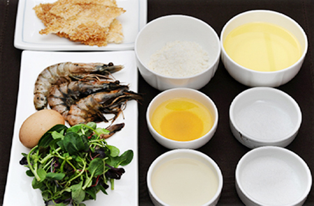 새우(100g), 소금(0.3g), 후춧가루(0.02g) 튀김가루(100g), 달걀(50g), 누룽지(50g), 튀김기름(200g)