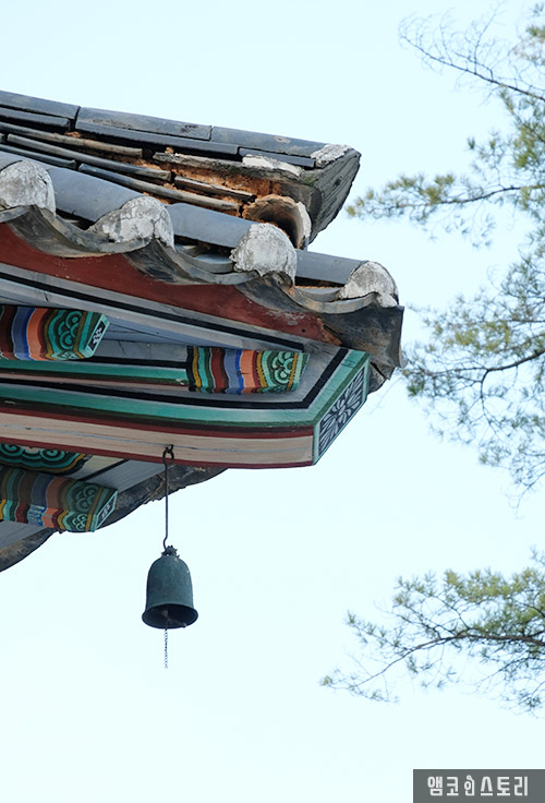 경내 한 가운데 우뚝 솟은 종루(보물 제1244호)는 화려한 장식이 눈길을 사로잡아요. 열두 개의 기둥을 사용한 2층의 누각 형태로 지붕 및 내부 구성이 여타의 사찰에서는 보기 드문 십자형 구조를 가져요. 조각의 섬세함이 단연 뛰어난 미감을 완성하는 종루 내부에는 유형문화재 제138호로 지정된 범종을 중심으로 목어, 운판, 법고를 봉안하고 있답니다.
